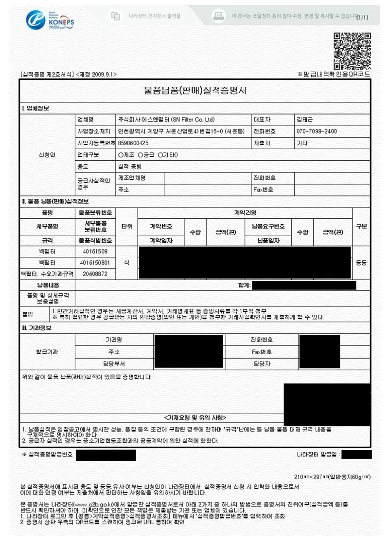 제품을 구매해서 필터를 교체하는 업체에 비해 월등히 가격 경쟁력 우세하며 필터 생산에서 교체까지 이루어지기 때문에 일정한 품질을 유지합니다.